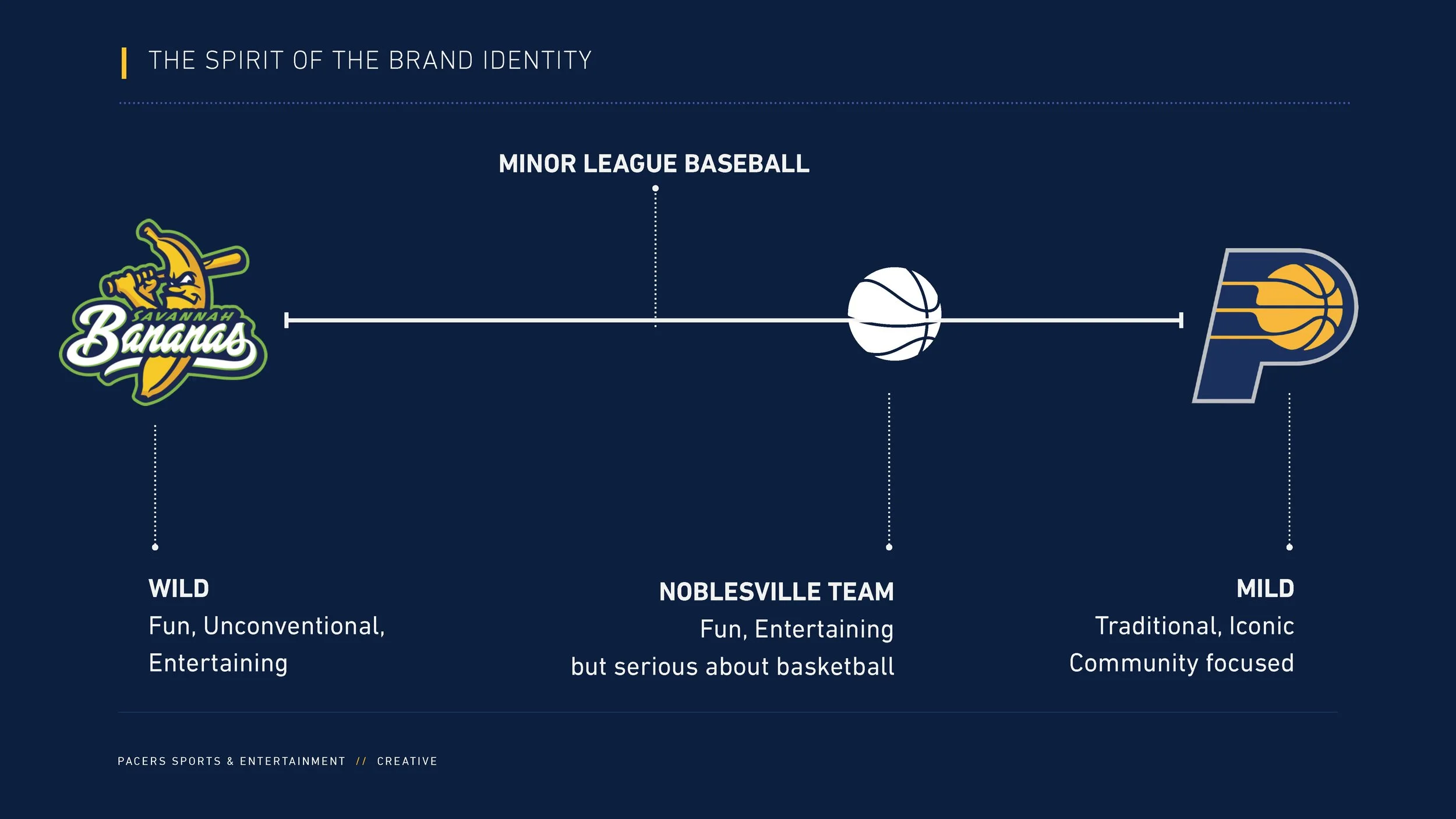 From there, we explored multiple naming territories: some tied to movement and speed, others rooted in local nature and folk lore, and others that tapped into grit, ambition, and the next generation of talent. We also considered names that connected back to the Pacers organization in more subtle, ownable ways.